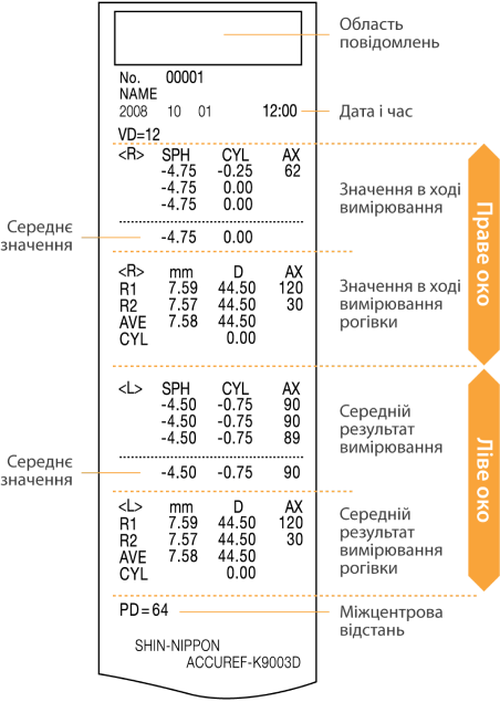 Після того, як проведено вимірювання параметрів одного ока, Accurref-K 9003D автоматично фокусується і проводить вимірювання параметрів другого ока.